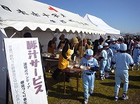 800食のおいしい豚汁のサービスにはみな満足顔。ご馳走様でした。
