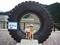 近くには90トン積みダンプトラックのタイヤが展示(外径2,8メートル)大きさに驚いた。(ブリジストン製)