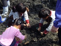 親子でどろんこ、自然にふれあう貴重な体験をした。