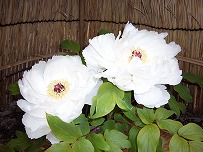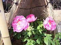 写真 徳川園のフユボタン(冬牡丹) わら囲いが冬の風情をかもす